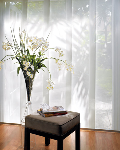 Vertical blinds are as versatile as they are stylish. Best suited for windows that are wider than they are tall and slide from side to side, vertical blinds can be custom made to fit nearly any opening. Watch this video for more information and application ideas for Hunter Douglas vertical blinds. For decades, vertical blinds have been used to cover large openings. Often used for sliding glass doors, vertical blinds have since become a become a common style of window treatments homes across America. Today’s selection of vertical blinds offers a wide variety of materials, textures, colors, and styles.